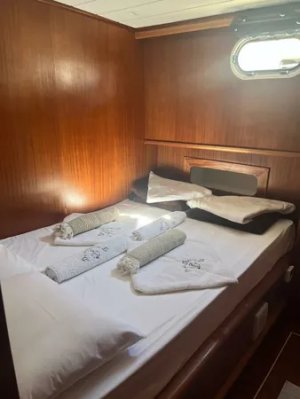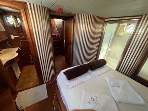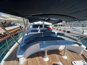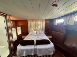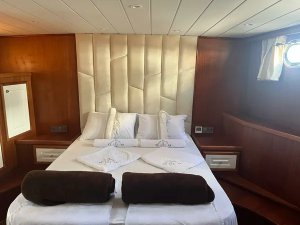 Devrim, which is in the Luxury gulet class, offers a comfortable travel experience with its modern structure built in 2021, with a capacity of 8 guests. With a total of 4 cabins, including 1 master, 3 double and cabins, each equipped with a shower and WC, it provides comfort to its guests in every detail.
