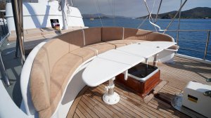 Blending modern comfort elements and traditional Turkish hospitality, this special charter boat offers unique opportunities for those who want to enjoy the sun and the sea in deep blue waters and is equipped with details that make every moment special in popular destinations such as Bodrum, Göcek and Fethiye.