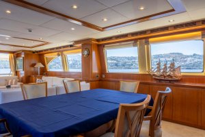 Built in 2007, Sanref offers beautifully proportioned decks for exquisite indoor/outdoor living during a luxury yacht charter.
