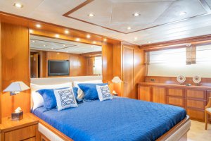 Sanref is great for families thanks to her child-friendly setup. She offers guest accommodation for up to 12 guests with a layout comprising a master suite, one VIP cabin, one double cabin and two twin cabins. There are 9 beds in total, including 3 queen, 4 singles and 2 pullmans. She is also capable of carrying up to 5 crew onboard to ensure a relaxed luxury yacht charter experience.